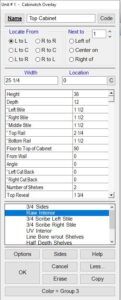 - ¾ Scribe L/R – Gives indication that a ¾” scribe was selected for a particular cabinet side. *ONLY APPLICABLE ON 1-1/2” Stile Widths!